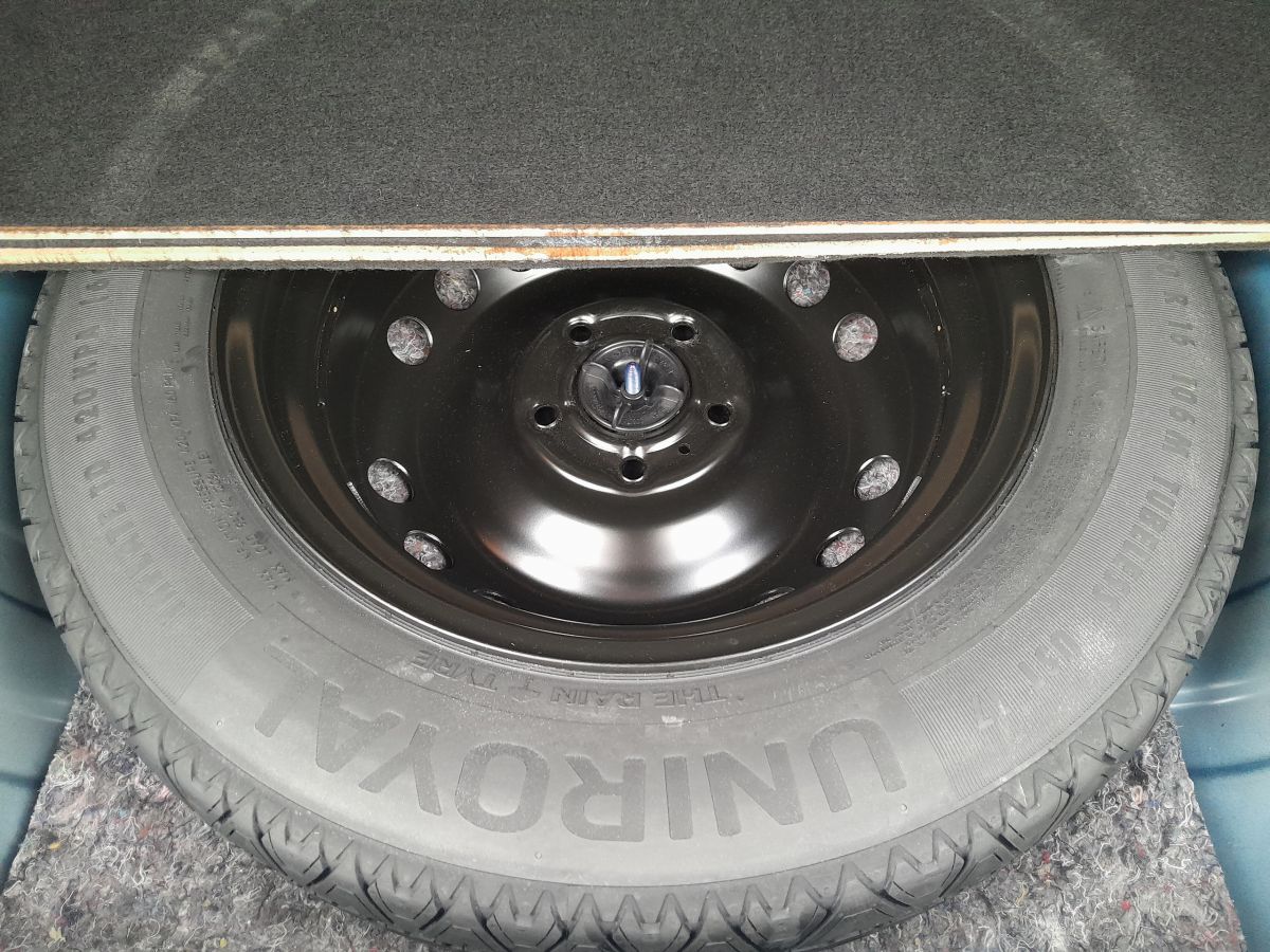 - Roue de secours: roue galette, jante acier